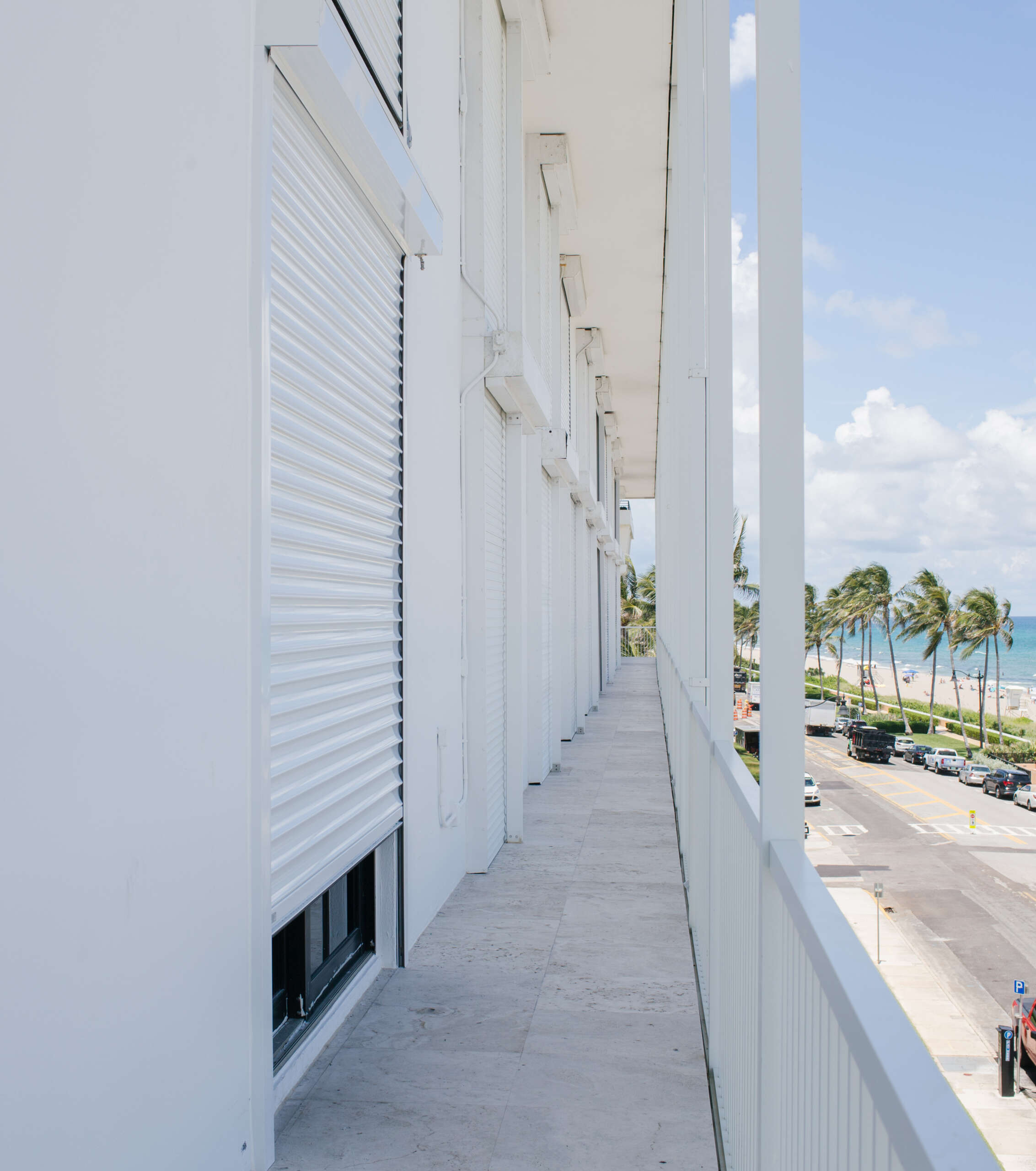 Rolldown Shutters open/close vertically. They can be installed outside any existing window or door. There are choices of different types of slats; PVC, foam-filled aluminum, and extruded aluminum. Plus, several color options. Vent holes between the slats allow light to penetrate, while still providing maximum storm protection.